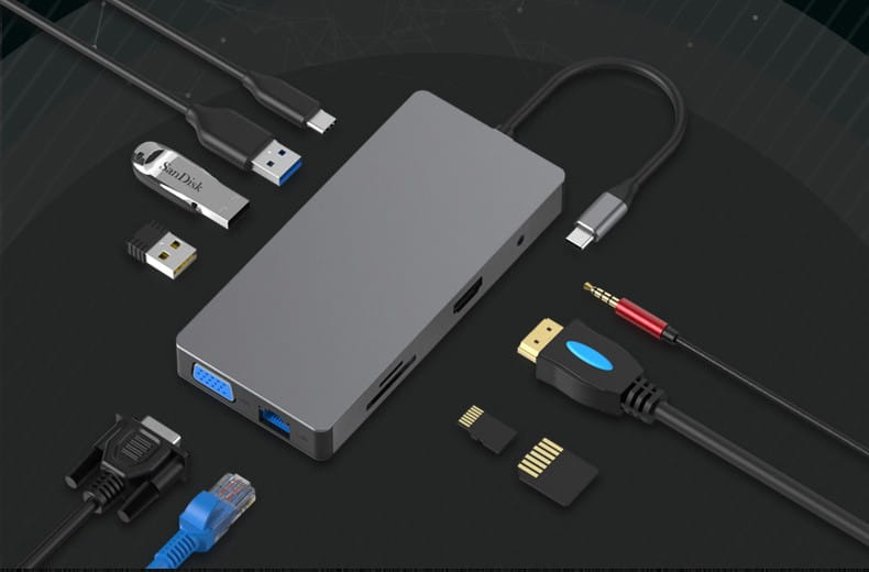 - 10w1 – rozszerzenie portu USB-C o dziesięć dodatkowych gniazd
