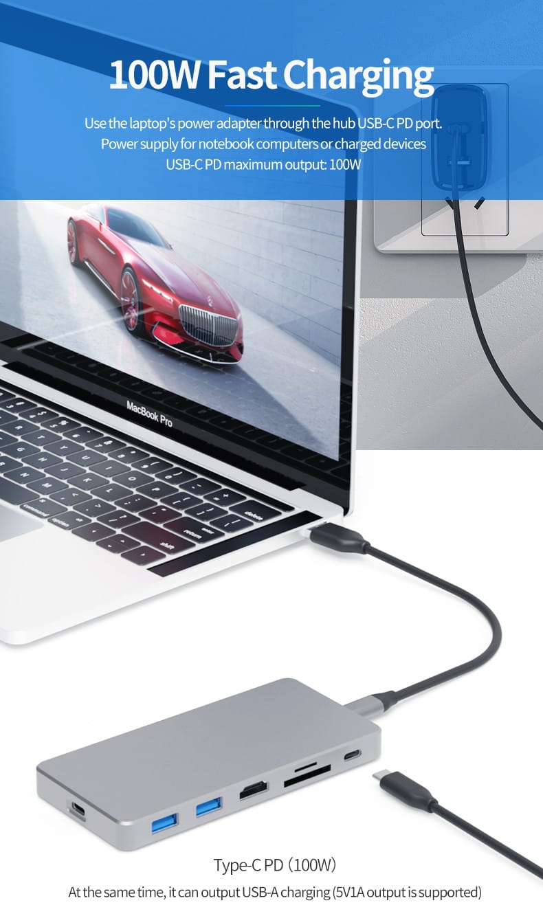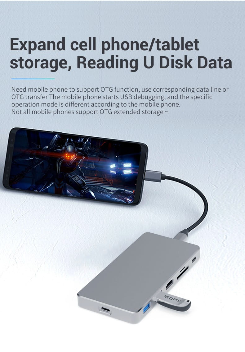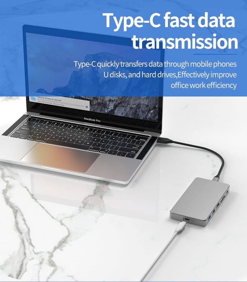 - Funkcje stacji dokującej: USB 3.0 wysokiej prędkości do 10GB, interfejs kart pamięci TF i SD,