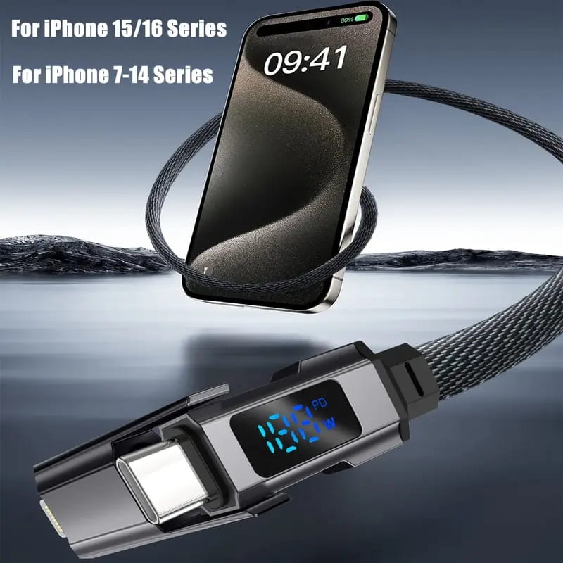 Rewelacyjny, mocny, kabel USB-C 4 w 1 z wyświetlaczem mocy, 2m